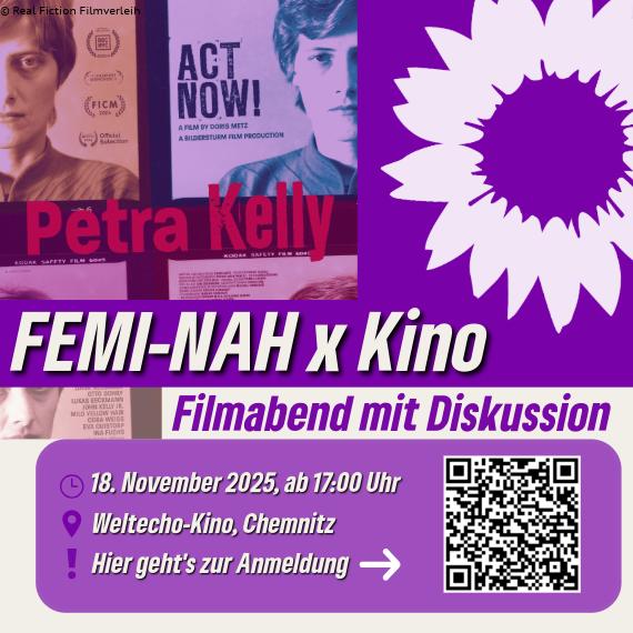 - 18.11. / 17:00 Uhr / „Petra Kelly – Act Now!“ Filmabend mit Diskussion / Weltecho-Kino, Chmenitz, Annaberger Straße 24