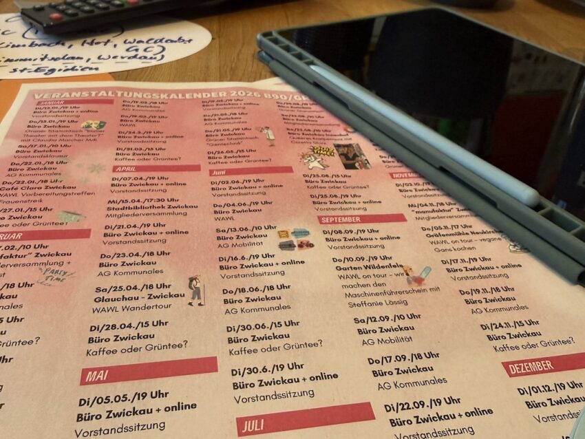 Im Mittelpunkt standen unsere Ziele für den Kreisverband Zwickau sowie eine klare Aufgabenverteilung im Vorstand. Außerdem haben wir mit der Planung der Veranstaltungen für 2026 begonnen und uns mit zentralen Fragen rund um Bürostrukturen, Finanzen und Angestellte, Mitgliederentwicklung, Kommunikation und Öffentlichkeitsarbeit beschäftigt.