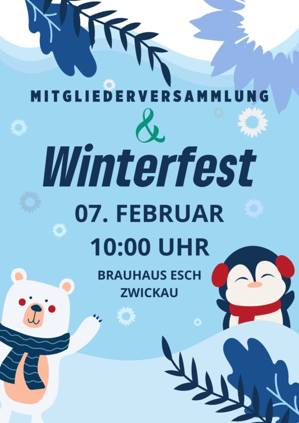 Unsere Mitgliederversammlung findet am Samstag, 07. Februar 2026 um 10:00 Uhr im Brauhaus Esch (Eingang Peter-Breuer-Straße 14-16, 08056 Zwickau) statt.