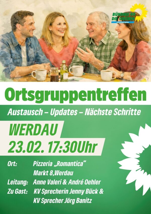 Unter der Leitung von Wolfgang Rau tauschen wir uns über grüne Kommunalpolitik aus, diskutieren aktuelle Themen aus Stadtrat und Kreistag und entwickeln gemeinsam Ideen für ein nachhaltiges, lebenswertes Zwickau.