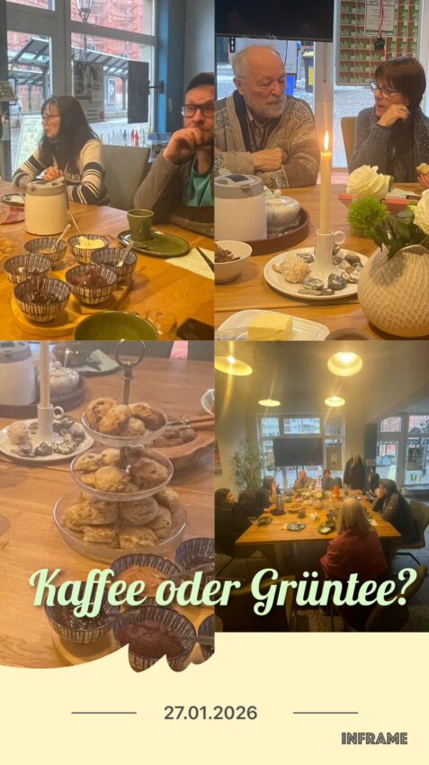 Bei „Kaffee oder Grüntee“ darf locker und entspannt, ehrlich und ohne feste Themen über alles gesprochen werden: Politik, Alltag, Ideen oder einfach das Leben. Und Kuchen gibt es sowieso!