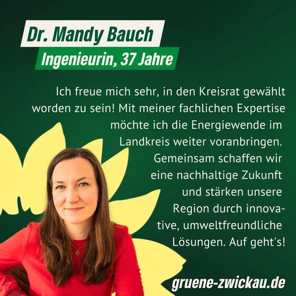 - Dr. Mandy Bauch: mandy.bauch@gruene-zwickau.de Video: https://www.youtube.com/shorts/jiw0UnZjZ0g